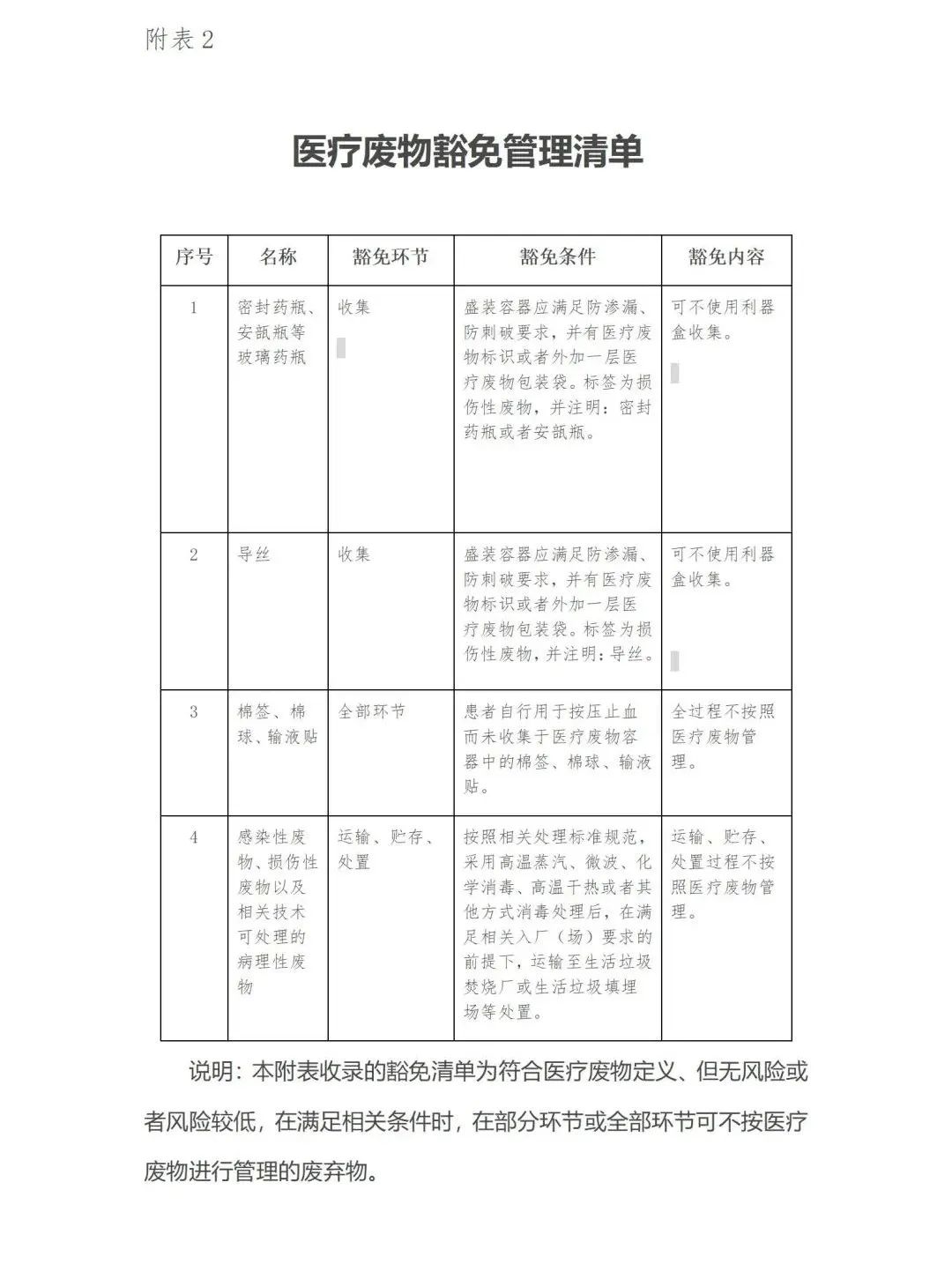 一、根据《中华人民共和国传染病防治法》《中华人民共和国固体废物污染环境防治法》《医疗废物管理条例》《医疗卫生机构医疗废物管理办法》《国家危险废物名录》等法律法规、部门规章的规定,制定本目录。本目录适用于各级各类医疗卫生机构。 二、医疗废物的分类收集应当根据其特性和处置方式进行,并与当地医疗废物处置的方式相衔接。在保证医疗安全的情况下,鼓励医疗卫生机构逐步减少使用含汞血压计和体温计,鼓励使用可复用的医疗器械、器具和用品替代一次性医疗器械、器具和用品,以实现源头减量。医疗废物分为感染性废物、损伤性废物、病理性废物、药物性废物和化学性废物,医疗废物分类目录见附表1。 三、废弃的麻醉、精神、放射性、毒性等药品及其相关废物的分类与处置,按照国家其他有关法律、法规、标准和规定执行。 四、患者截肢的肢体以及引产的死亡胎儿,纳入殡葬管理。 五、药物性废物和化学性废物可分别按照《国家危险废物名录》中HW03类和HW49类进行处置。 六、列入本目录附表2医疗废物豁免管理清单中的医疗废物,在满足相应的条件时,可以在其所列的环节按照豁免内容规定实行豁免管理。 七、重大传染病疫情等突发事件产生的医疗废物,可按照县级以上人民政府确定的工作方案进行收集、贮存、运输和处置等。