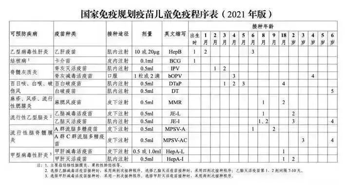 2 021年3月,国家卫健委发布的《国家免疫规划疫苗儿童免疫程序及说明(2021年版)》,与之前的版本相比,有了五大变化: