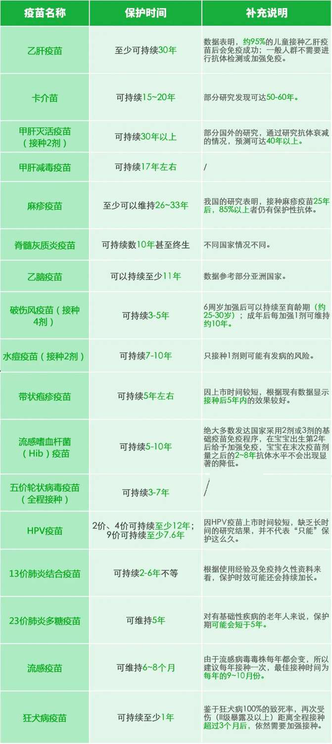 保护期的长短会受到接种年龄、健康状况、生活习惯、环境等多方面因素的影响。每个人都不会完全一样,那么对应的保护时间也就不相同。